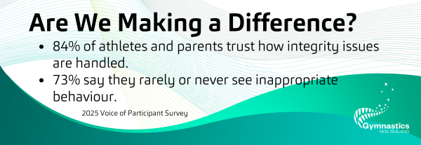 We remain incredibly appreciative of the importance clubs place on this work and grateful for the ongoing mahi that helps make gymnastics a safe, positive, and enjoyable sport for everyone.